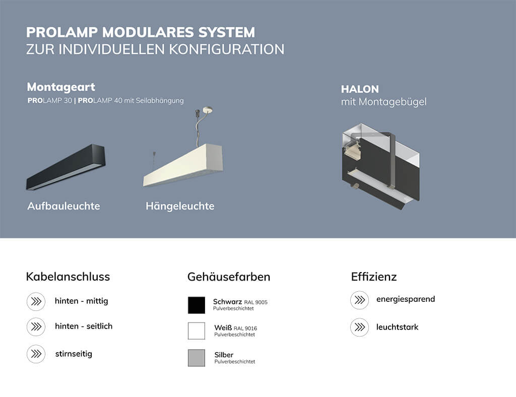 | LED Aufbauleuchte PROLAMP30Hcri90hm | 200616 | 45 W | silber | 1500 mm | opal+ | Push/DALI dimmbar | CCT | » Human Centric Lighting » Weißdynamische Beleuchtung |