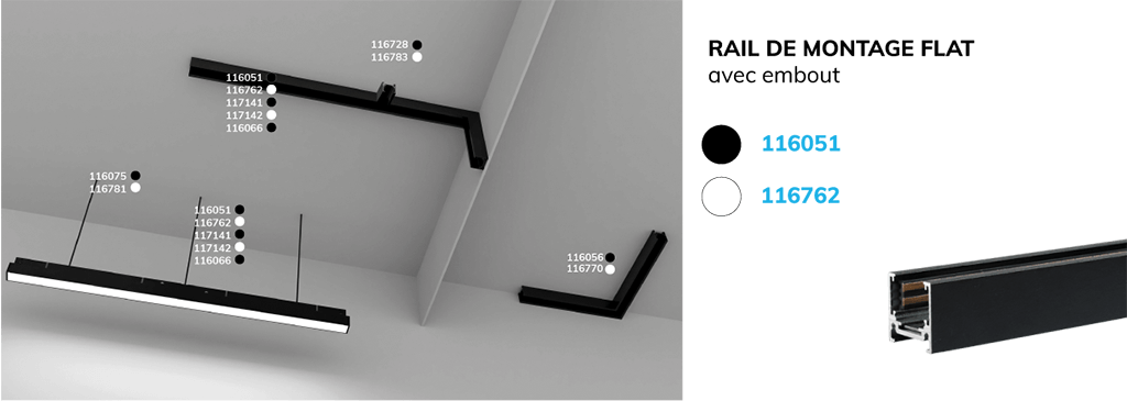 - Multiples applications : Rails encastrés, en saillie ou suspendus – Track48 offre une flexibilité maximale pour toutes les installations. Les configurations complexes sont également possibles grâce aux connecteurs d’angle.