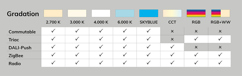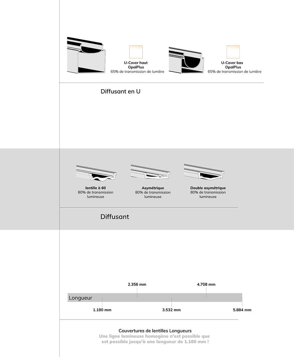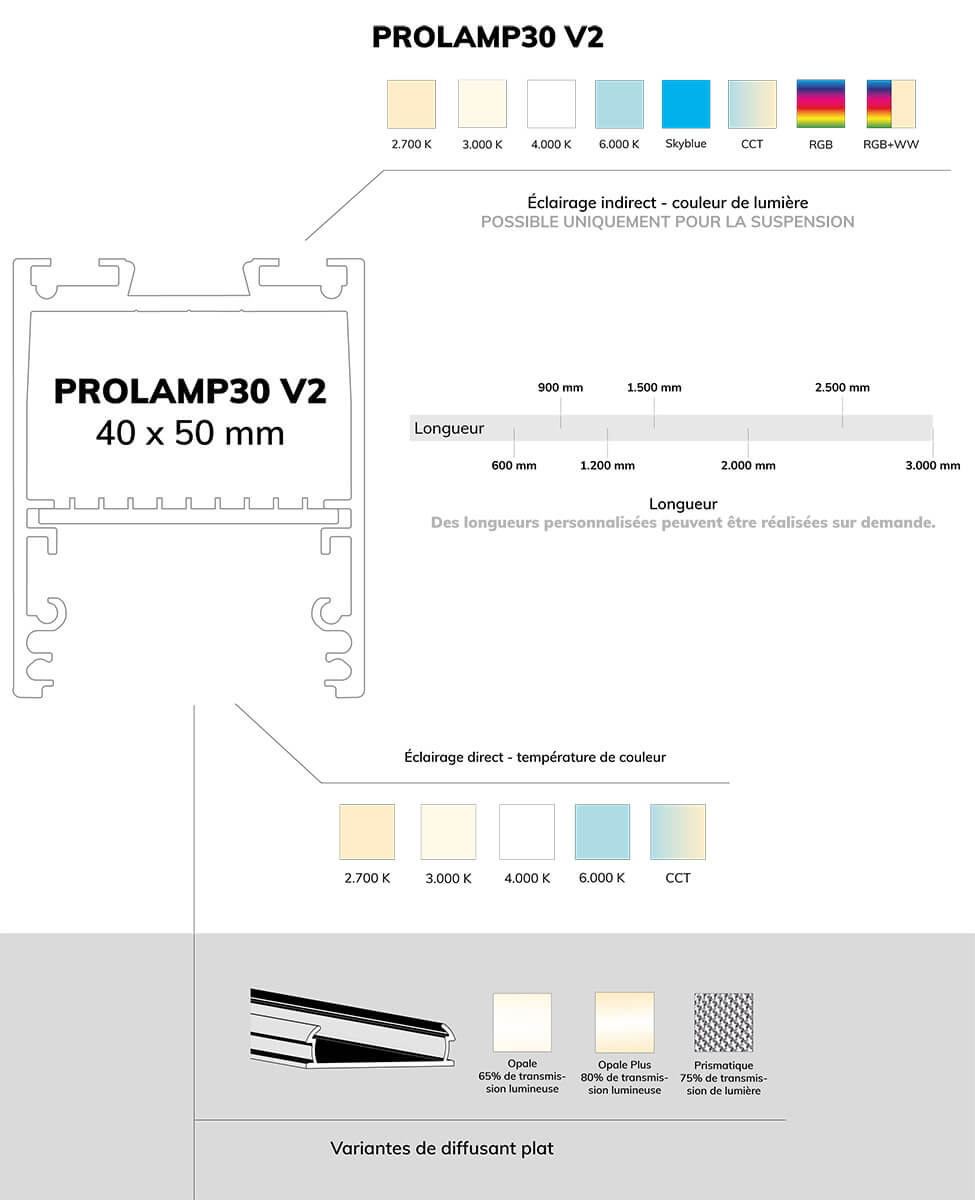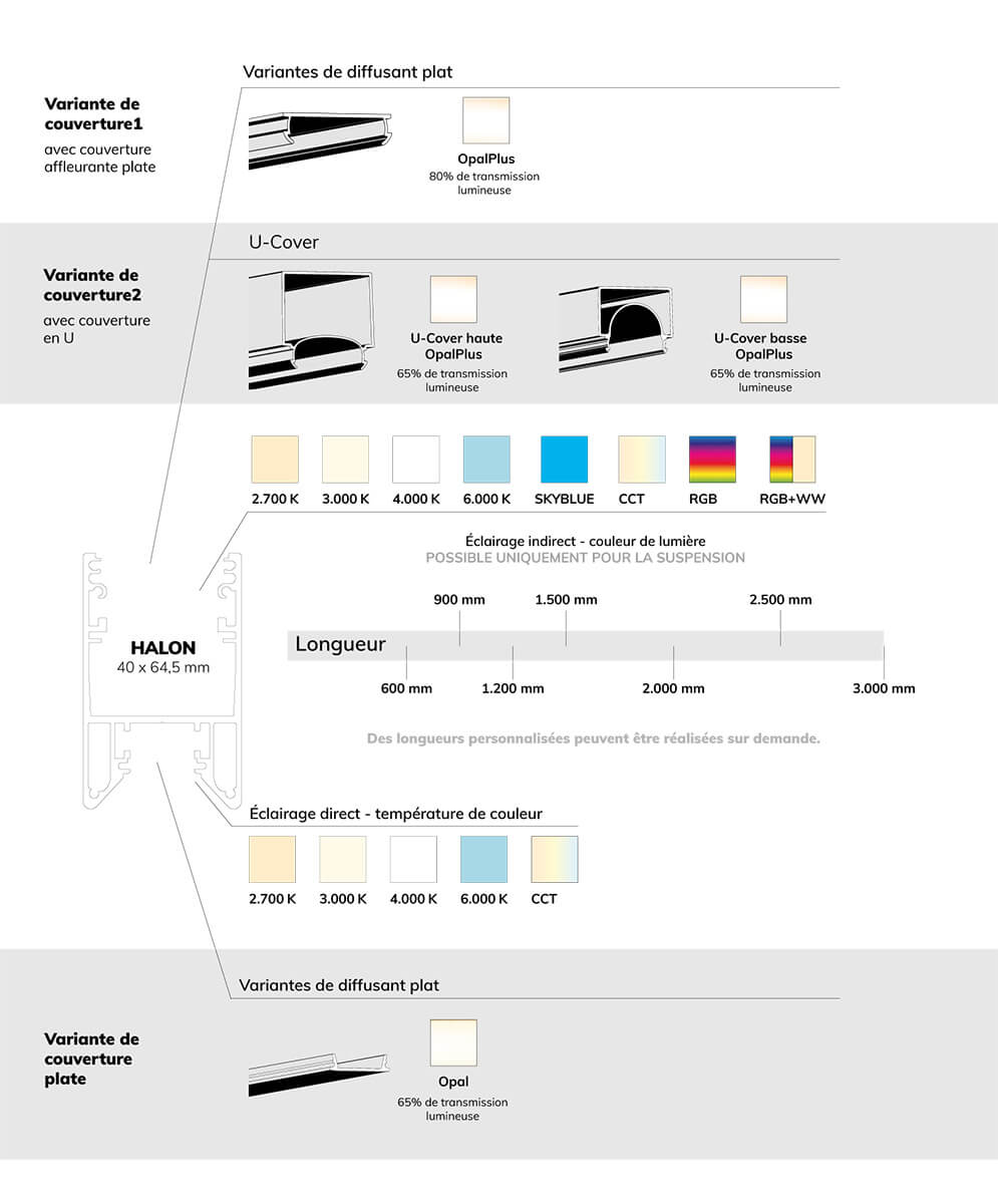 - Large choix de variateurs, couleurs de lumière et de profil et couvercles : Concevez l’éclairage selon vos goûts.