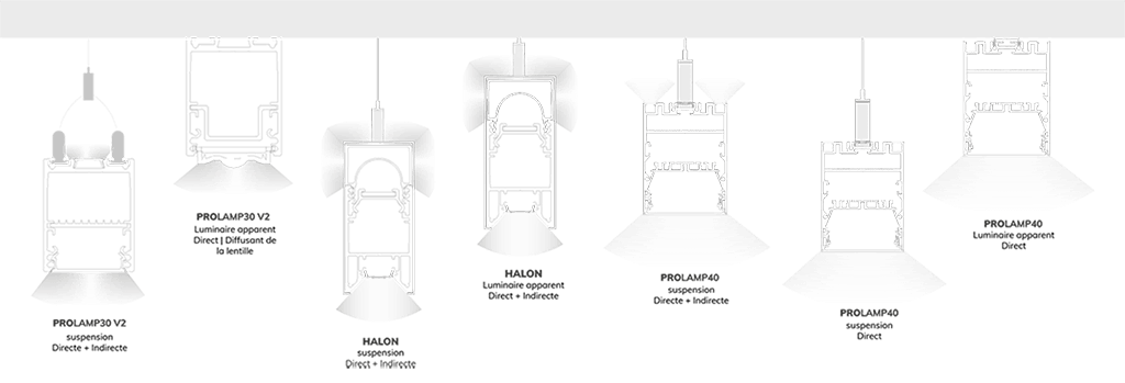 | PROLAMP30Hhs apparent | 200619 | Suspension LED PROLAMP30FIDhm 248 W | argent | 5884 mm | double asymétrique 25° Gradable Push/DALI | 4 000 K | 4 000 K | 2 pièces | » Couverture de lentille spéciale » Éclairage indirect |