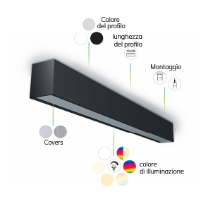 Sistema di linee luminose a LED modulare e configurabile